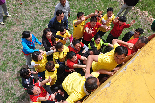 戶外拓展訓練活動,屬體驗式培訓的一種,它是通過讓訓練者以團隊一員親身參與到室內外趣味活動,如快速組隊、瘋狂快遞、滿杯填充、十人九足綁腿前行、擊鼓傳情等,以及戶外高空競技運動,如高空單杠、徒手攀畢業墻、攀巖、信任背摔等,在運動中去感知、調整和突破心理障礙、實施積極暗示,學會換位思考、挑戰自我極限,謀求最后成功。