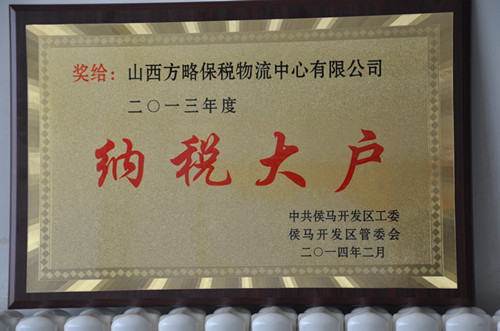 2月19日,侯馬經濟開發區召開2014年度工作會議,會上我集團所屬山西方略保稅物流中心有限公司榮獲2013年度開發區納稅大戶榮譽并頒發了牌匾。