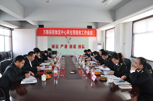 區(qū)二層會議室舉行了山西方略國際物流保稅園區(qū)“兩倉”預(yù)驗收工作會議。海關(guān)關(guān)長王歡騁、副關(guān)長宋雷、科長周學(xué)宏、巨雨琴、主任王云飛以及山西方略總裁馬自強(qiáng)、副總裁李紅屏等出席會議。海關(guān)副關(guān)長宋雷主持。