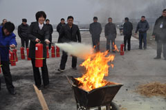 本次演練共分兩處進行,90余名員工參加。公司消防安全負責人向大家介紹了火災基本常識、滅火器類型及使用方法,安委會辦公室負責人向大家通報了“西安肉夾饃店11.14液化石油天然氣泄漏爆炸事故”及“12.1呼和浩特元福物流園區火災事故”等兩起安全生產事故,通過鮮明的案例,使大家充分意識到安全事故對生產、生活所帶來的慘痛教訓,并強調了防火安全的技能訓練與責任落實的重要意義。隨后,公司領導及所有在場人員實地進行了滅火器使用演練。
