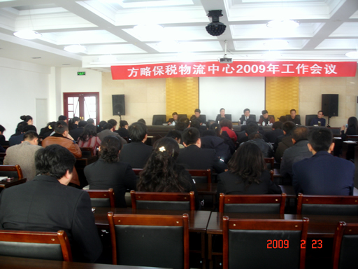 2009年2月23日上午9時(shí),方略保稅物流中心聯(lián)檢綜合辦公大樓五樓會(huì)議室座無(wú)虛席、靜寂無(wú)聲,一條紅色條幅懸掛在會(huì)場(chǎng)中央,中心董事長(zhǎng)兼總經(jīng)理李海瑕、執(zhí)行副總經(jīng)理馬自強(qiáng)、副總經(jīng)理胡永勝、孟成良以及方略進(jìn)出口貿(mào)易公司總經(jīng)理王天龍、連方陸海國(guó)際物流公司總經(jīng)理顧海濤、津方國(guó)際物流公司總經(jīng)理劉浩分坐在主席臺(tái)。此時(shí),在這里舉行的是方略保稅物流中心2009年工作會(huì)議。會(huì)議由副總經(jīng)理孟成良主持。會(huì)上,執(zhí)行副總經(jīng)理馬自強(qiáng)首先代表中心領(lǐng)導(dǎo)班子做了2009年度工作報(bào)告。報(bào)告共分四部分:2008年工作簡(jiǎn)單回顧;2009年工作的指導(dǎo)思想、目標(biāo)、要求;2009年工作的具體措施;結(jié)束語(yǔ)。