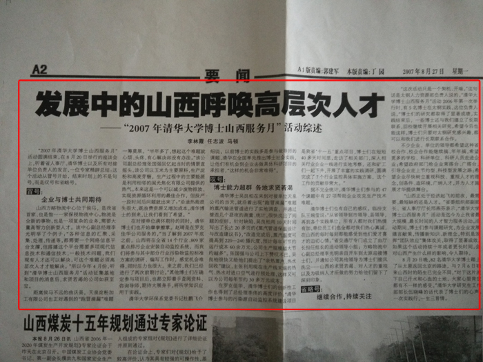 日期:2007-08-27  發布人:admin  瀏覽量:208 山西日報