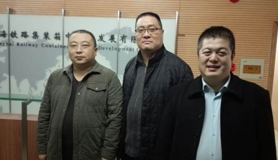 保稅物流運營事業部總裁劉皓(左)、副總裁陳晉峰(右)、上海鐵路集裝箱中心站經理鄭康(中)