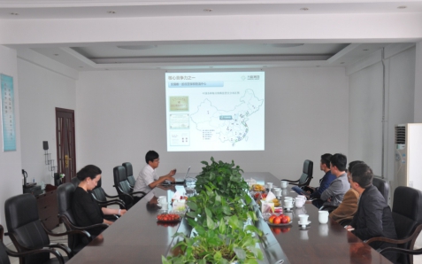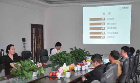 圖3:王效杰總經理一行聽取工作人員對集團PPT的講解