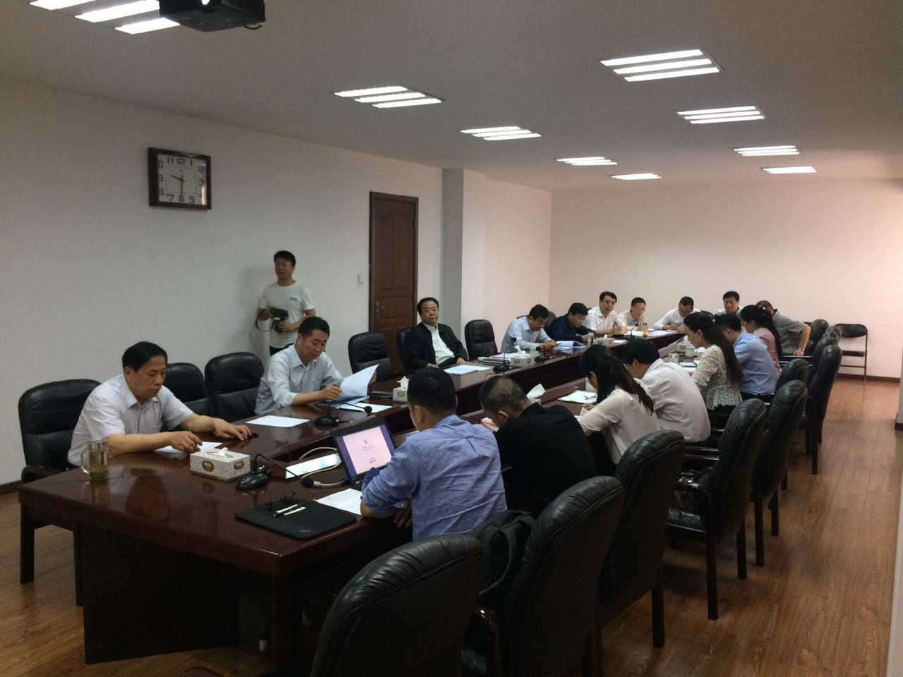 圖1:5月10日上午,侯馬開發區管委會主任張瑜慶(左三)在侯馬開發區三樓會議室主持召開了由主要職能部門參加的方略陸港集團健康醫療小鎮項目規劃論證會,經會議審議決定項目通過規劃論證