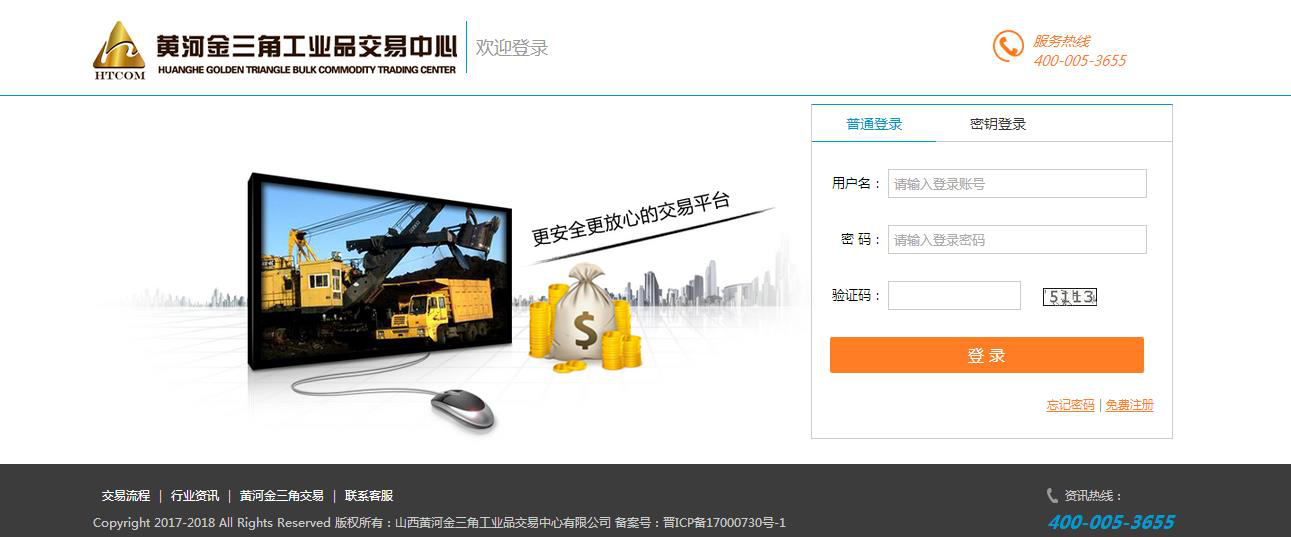圖1:黃河金三角工業品交易中心新平臺客戶登錄界面一瞥