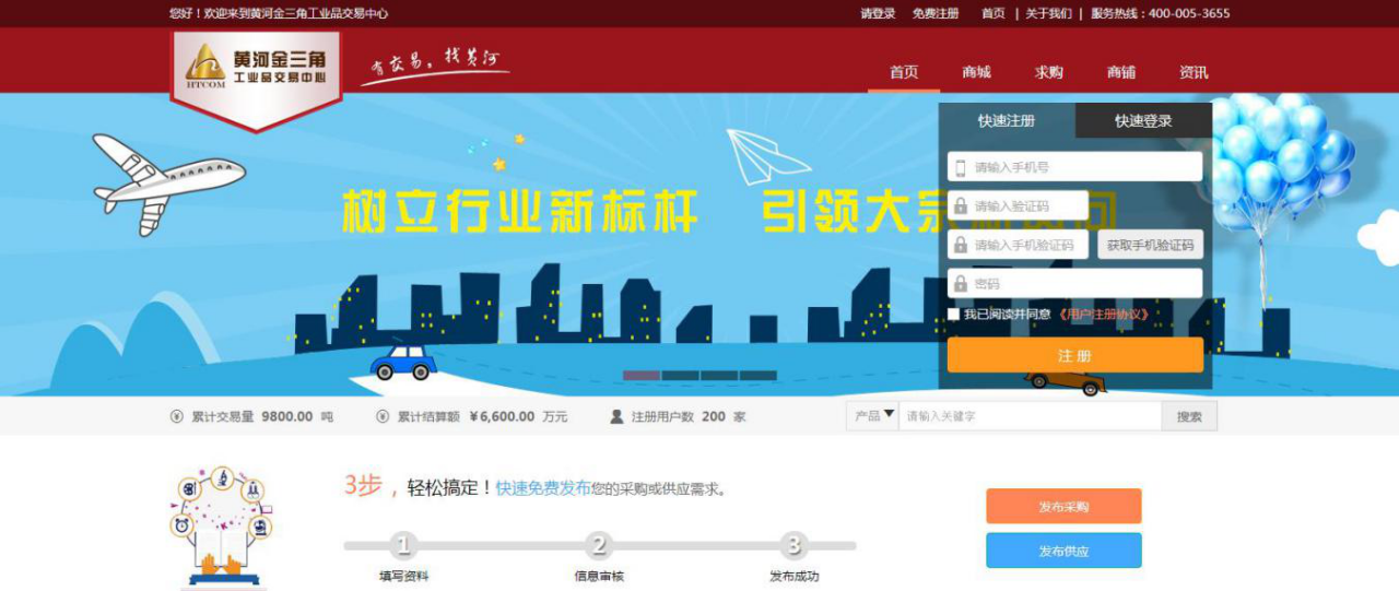 圖:升級改版后的黃河金三角工業品交易中心平臺登陸界面