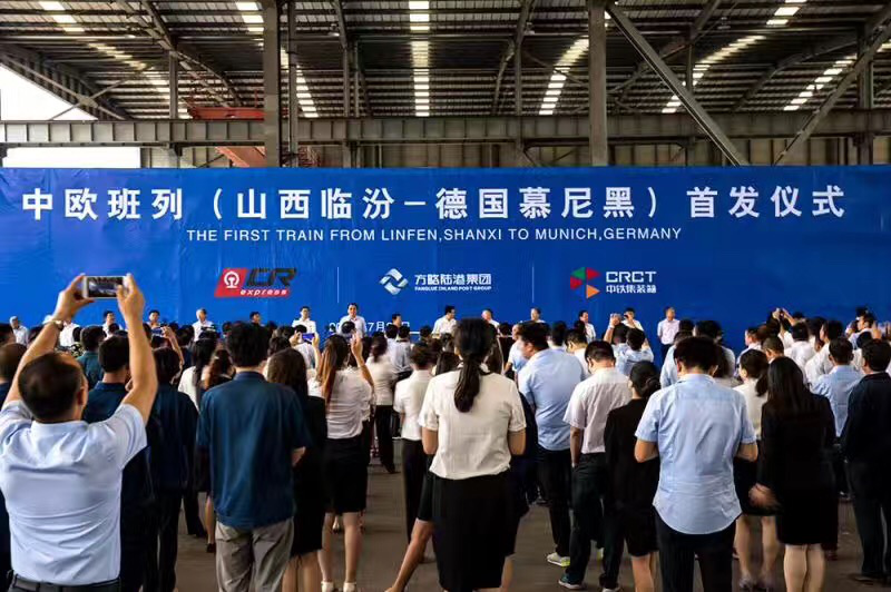 圖1:2017年7月28日上午11時02分,臨汾首趟中歐班列(臨汾—慕尼黑)75012次在山西方略保稅國際陸港口岸園區這一晉南內陸港正式開行