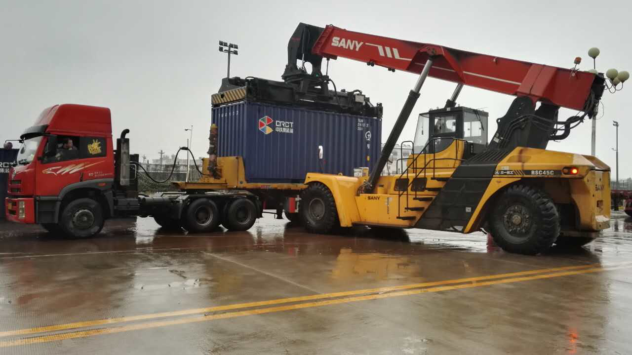 圖3:雨季里,正面吊司機冒雨進行集裝箱裝車作業以滿足客戶需要