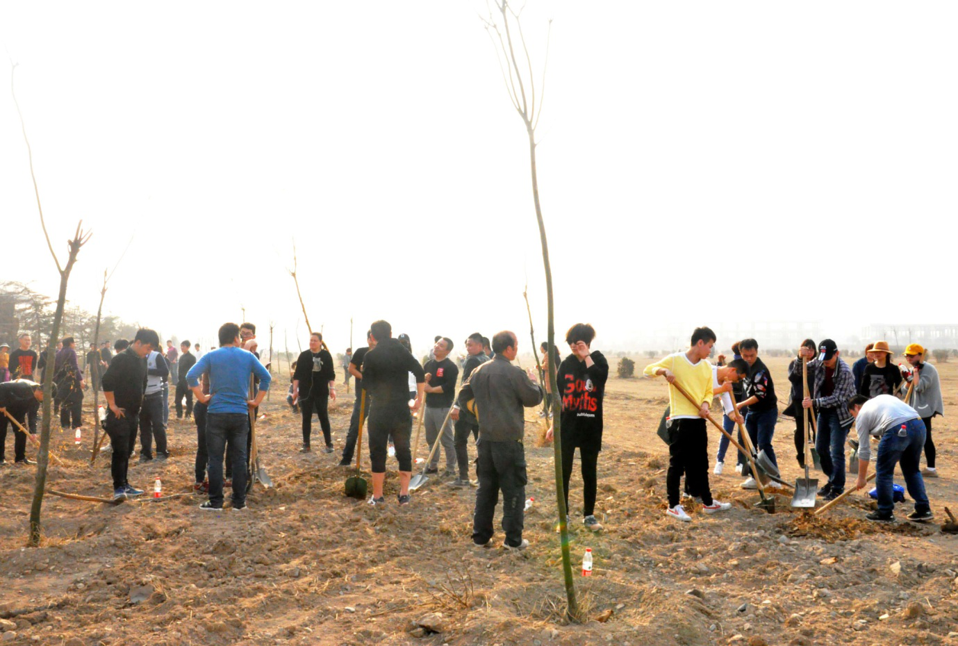 圖3:植樹現(xiàn)場,大家爭先恐后、互相協(xié)同,積極開展植樹運動