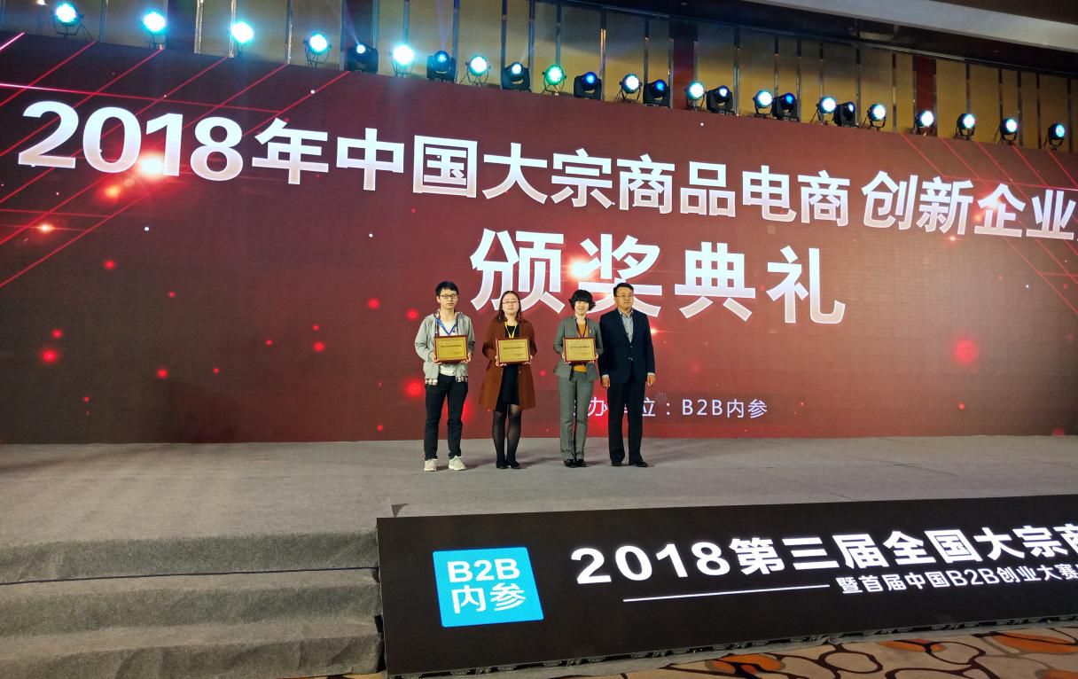 會(huì)上,方略陸港集團(tuán)的供應(yīng)鏈創(chuàng)新及應(yīng)用喜獲大會(huì)組委會(huì)頒發(fā)的“2018年中國(guó)大宗商品電商創(chuàng)新企業(yè)”榮譽(yù)。賀亞燕副總裁代表企業(yè)上臺(tái)領(lǐng)獎(jiǎng)。
