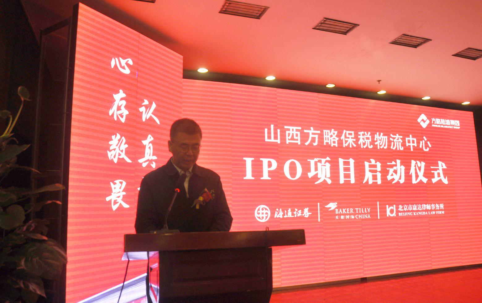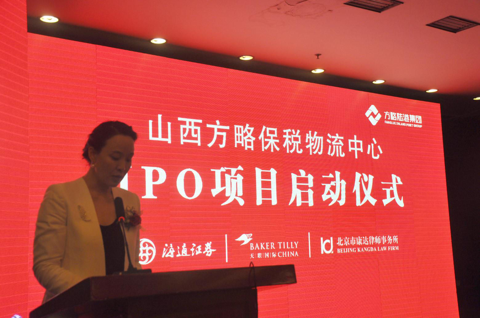 2018年4月24日上午,山西方略保稅物流中心IPO項(xiàng)目啟動(dòng)儀式在侯馬市華翔大酒店四樓會(huì)議廳隆重舉行。臨汾市委常委、宣傳部長(zhǎng)李朝旗,侯馬市委副書(shū)記、市長(zhǎng)段慧剛,侯馬市人大常委會(huì)主任馬興民,侯馬市政協(xié)主席田懷宇,侯馬市委常委、侯馬經(jīng)濟(jì)開(kāi)發(fā)區(qū)管委會(huì)主任、黨工委書(shū)記張瑜慶,侯馬市副市長(zhǎng)師安平、梁明軍、王勇以及臨汾開(kāi)發(fā)區(qū)黨工委書(shū)記、管委會(huì)主任鄭育敏,侯馬市人民檢察院檢察長(zhǎng)趙忠慶,侯馬職業(yè)中專(zhuān)黨委書(shū)記、市廣電中心主任石瑩,方略陸港集團(tuán)董事長(zhǎng)李海瑕、海通證券北京投資銀行部總經(jīng)理周威、天職國(guó)際會(huì)計(jì)事務(wù)所首席合伙人邱靖之、康達(dá)律師事務(wù)所合伙人鮑卉芳等領(lǐng)導(dǎo)及特邀嘉賓出席了啟動(dòng)儀式。梁明軍副市長(zhǎng)主持了整個(gè)儀式。