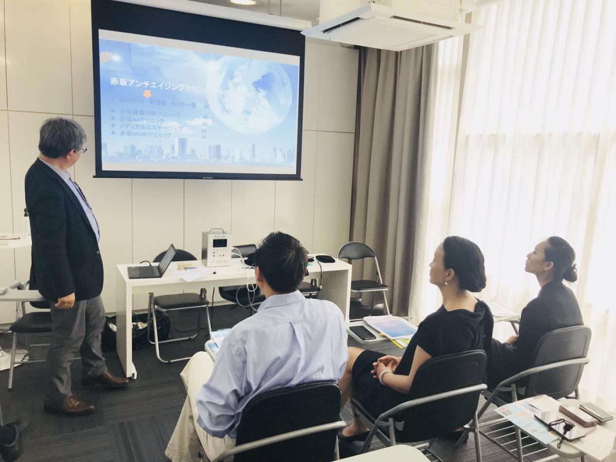 圖5:拜訪赤坂醫(yī)院時(shí),院長森吉臣先生(左一)和日本防老協(xié)會(huì)理事長介紹了日本最新的抗衰老內(nèi)科醫(yī)療