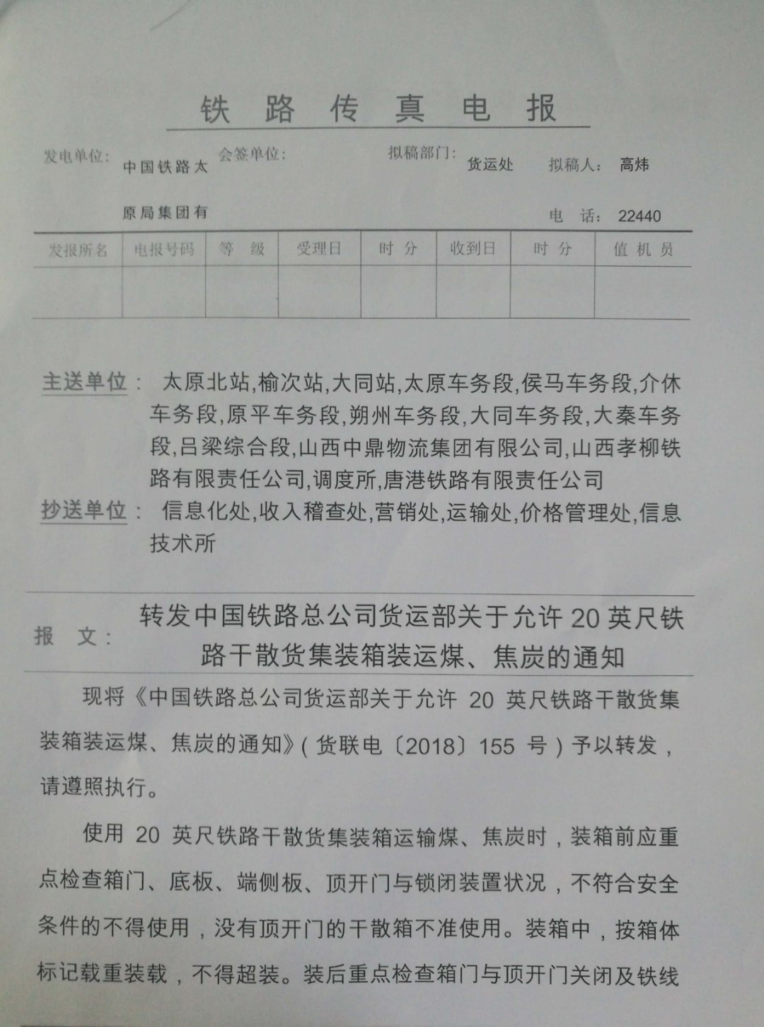 圖1:近日中國鐵路總公司貨運部下發了關于20尺干散貨箱運煤、焦炭的通知