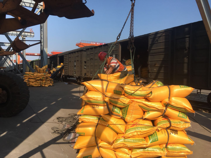 圖1:4萬平方米的監管庫整齊堆放即將通過鐵路發運的化肥