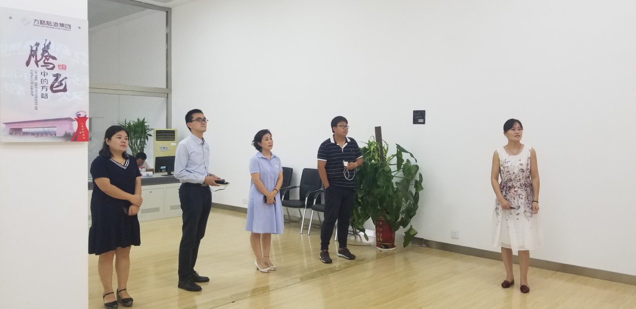 圖1:蘇美達(dá)集團(tuán)蘇美達(dá)國(guó)際技術(shù)貿(mào)易有限公司物流部主管蔡鐘毓(右二) 在方略保稅陸港多式聯(lián)運(yùn)股份有限公司總裁郭麗琴(右三)的陪同下在展廳聽(tīng)取工作人員介紹集團(tuán)概況