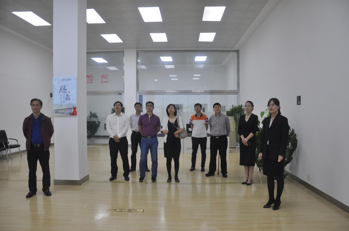 圖1:天津港陸海物流有限公司董事長鄭斌(左四)、天津港集團集裝箱部副部長兼陸海物流有限公司總經理孔維東(右三)等一行在方略陸港集團董事長李海瑕董事長(右二)的陪同下在園區展廳聽取工作人員介紹集團情況