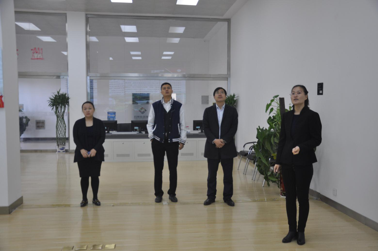 圖1:平安國際融資租賃有限公司物流團隊區域經理韓邦聚(左二)在方略陸港集團常務副總裁吳康波(右二)、財務總監趙魯梅(左一)的陪同下蒞臨園區參觀考察,圖為正在聽取工作人員介紹園區相關情況