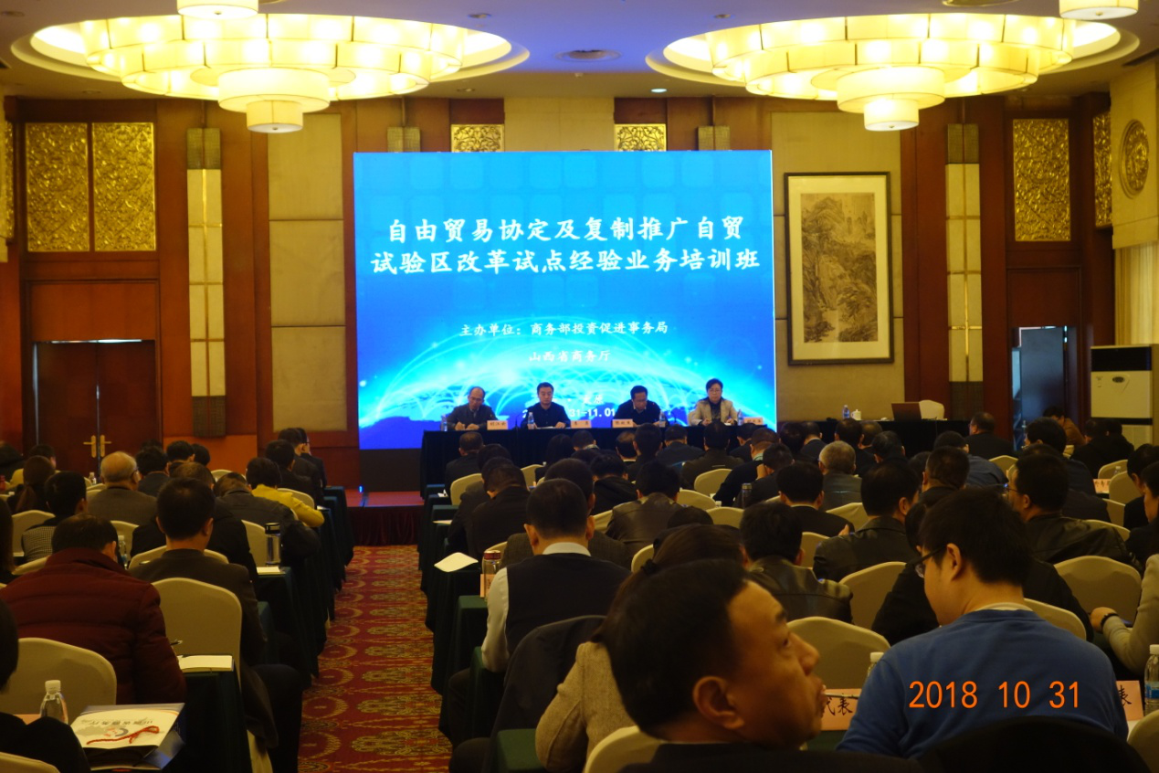 為貫徹落實我國已經簽署的自由貿易協定,宣傳推廣自貿協定內容,促進我國與自貿伙伴的經貿合作,大力推動我省復制推廣自貿試驗區改革試點經驗工作,進一步提高各市利用外資和投資促進工作人員業務素質,積極引導開展科學高效、精準務實的招商引資工作,2018年10月31日至11月1日,山西省商務廳會同商務部投資促進事務局在太原迎澤賓館聯合舉辦了全省自由貿易協定及復制推廣自貿試驗區改革試點經驗業務培訓班,方略陸港集團派員參加了培訓班。