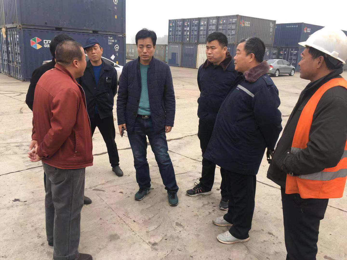圖:侯馬車務段貨營中心業務主管李偉(中)、侯馬北站技術主管古安國(右三)共同蒞臨方略保稅國際陸港口岸園區檢查指導工作