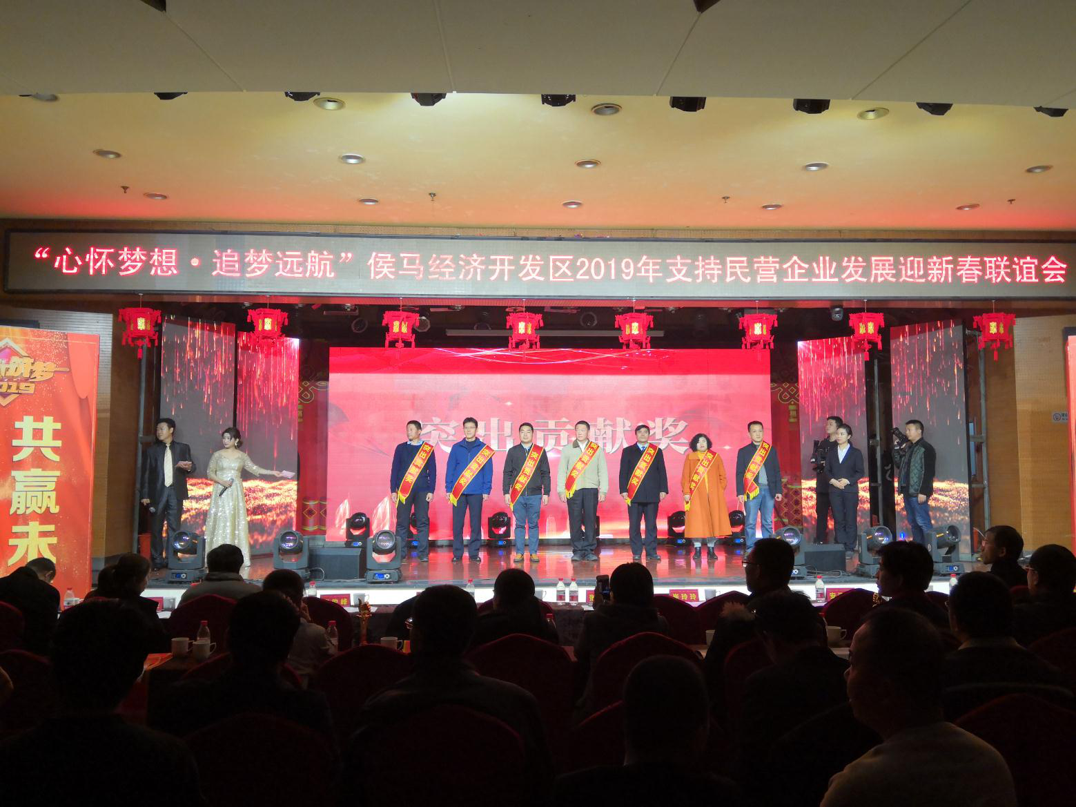 圖1:方略陸港集團受邀參加侯馬經濟開發區2019年支持民營企業發展新春聯誼會,會上,集團被授予2018年度全區民營企業突出貢獻獎