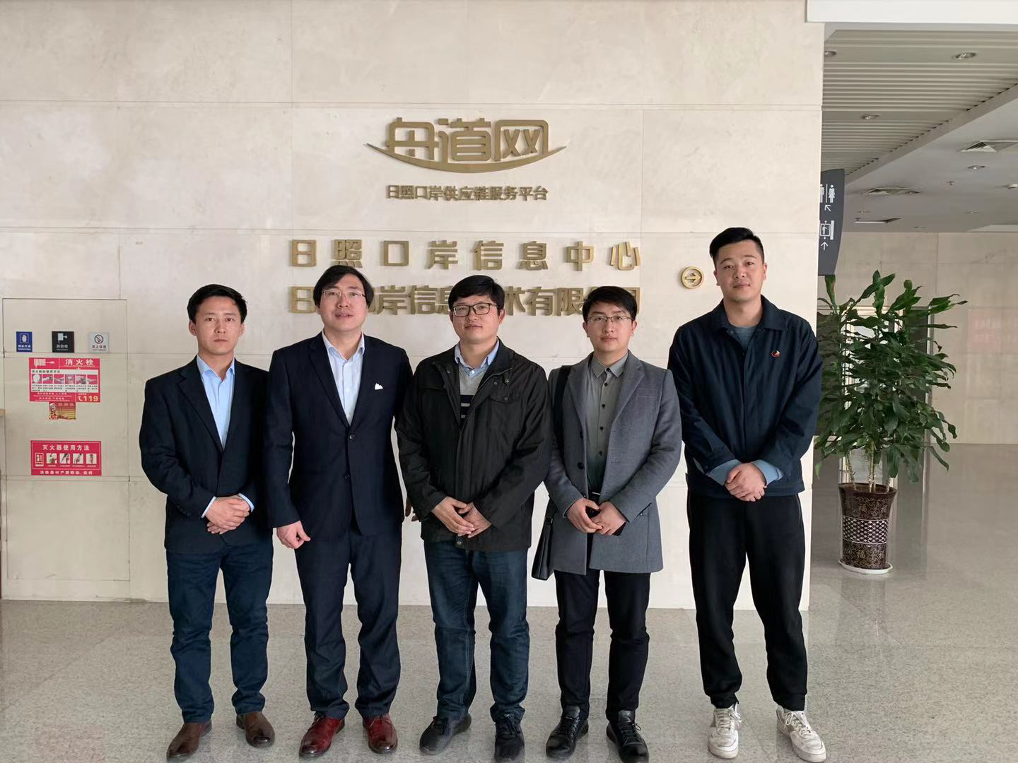 圖:方略陸港集團(tuán)常務(wù)副總裁吳康波(左二)帶領(lǐng)業(yè)務(wù)副總裁兼港口分公司總經(jīng)理徐進(jìn)(左一)、系統(tǒng)科技保障部部長(zhǎng)楊棟(右二)赴日照口岸信息技術(shù)有限公司考察學(xué)習(xí)受到了總經(jīng)理王棟(中)的熱情