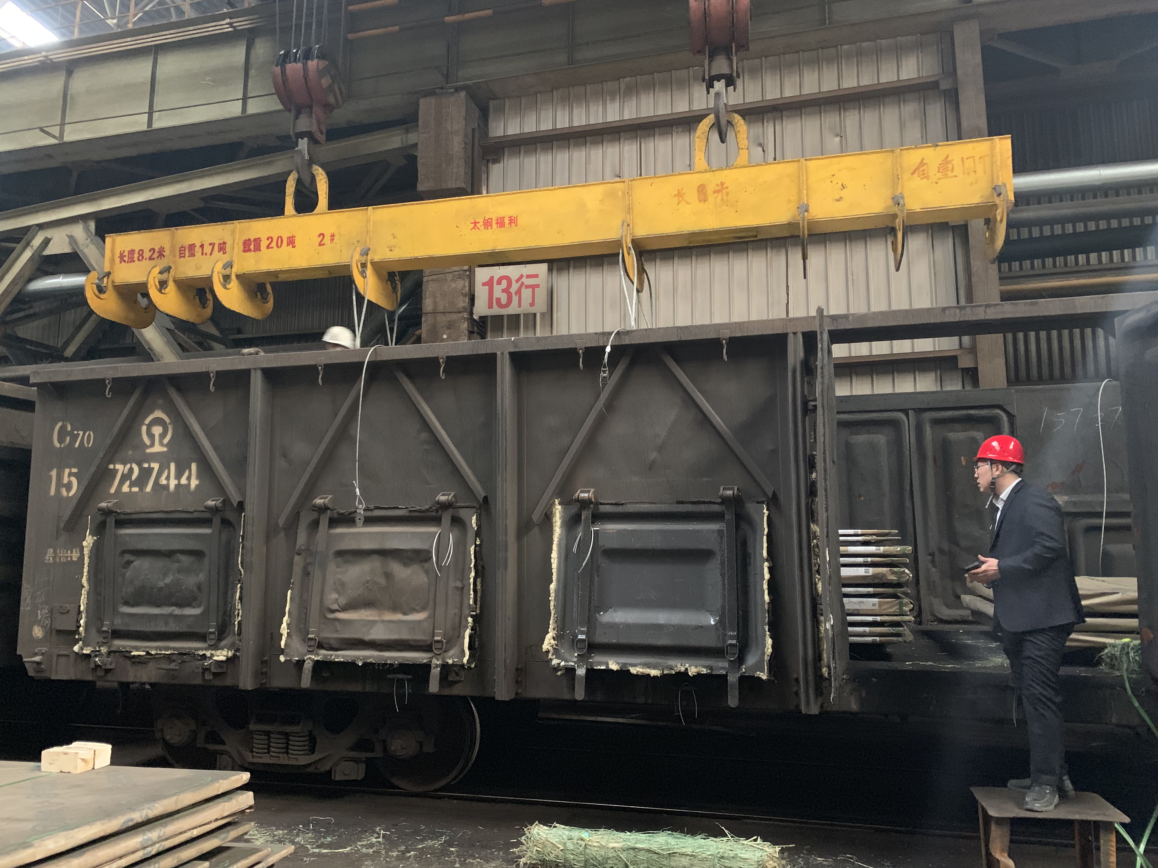圖2:方略陸港集團常務副總裁吳康波登車查看裝車方案