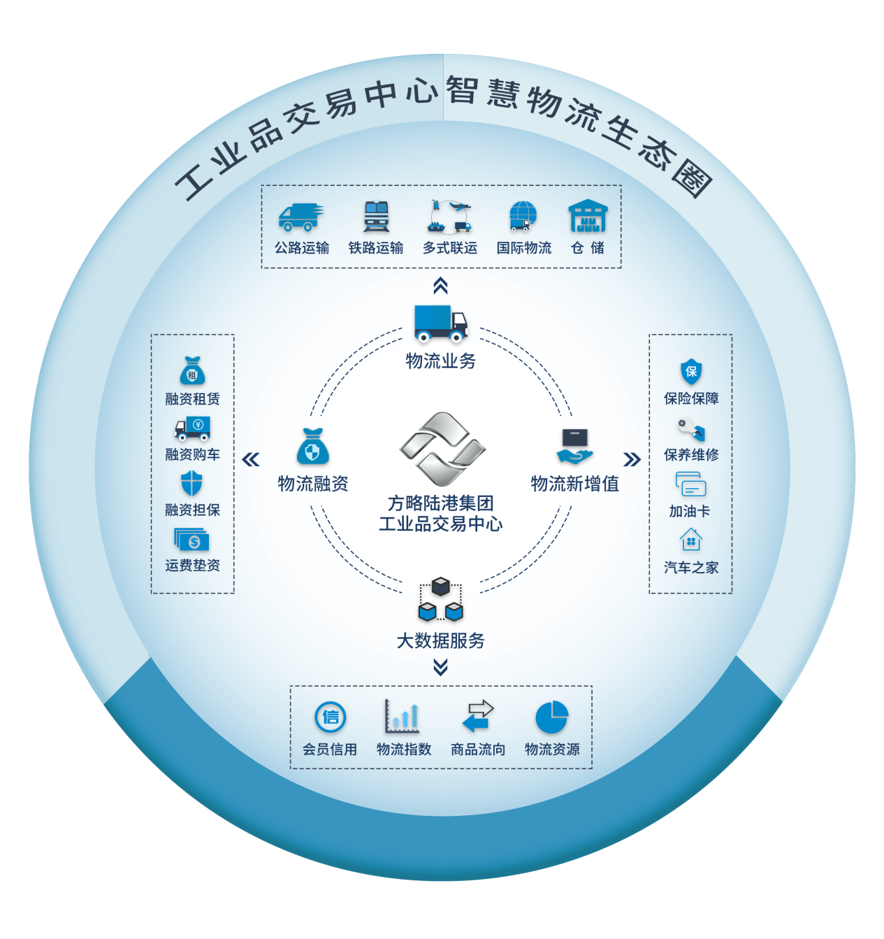 基于智慧物流運輸平臺提供的數字化信息化物流服務,工業品交易中心還拓展出其他增值服務,如物流金融服務、物流新增值服務、大數據服務等三大板塊。
