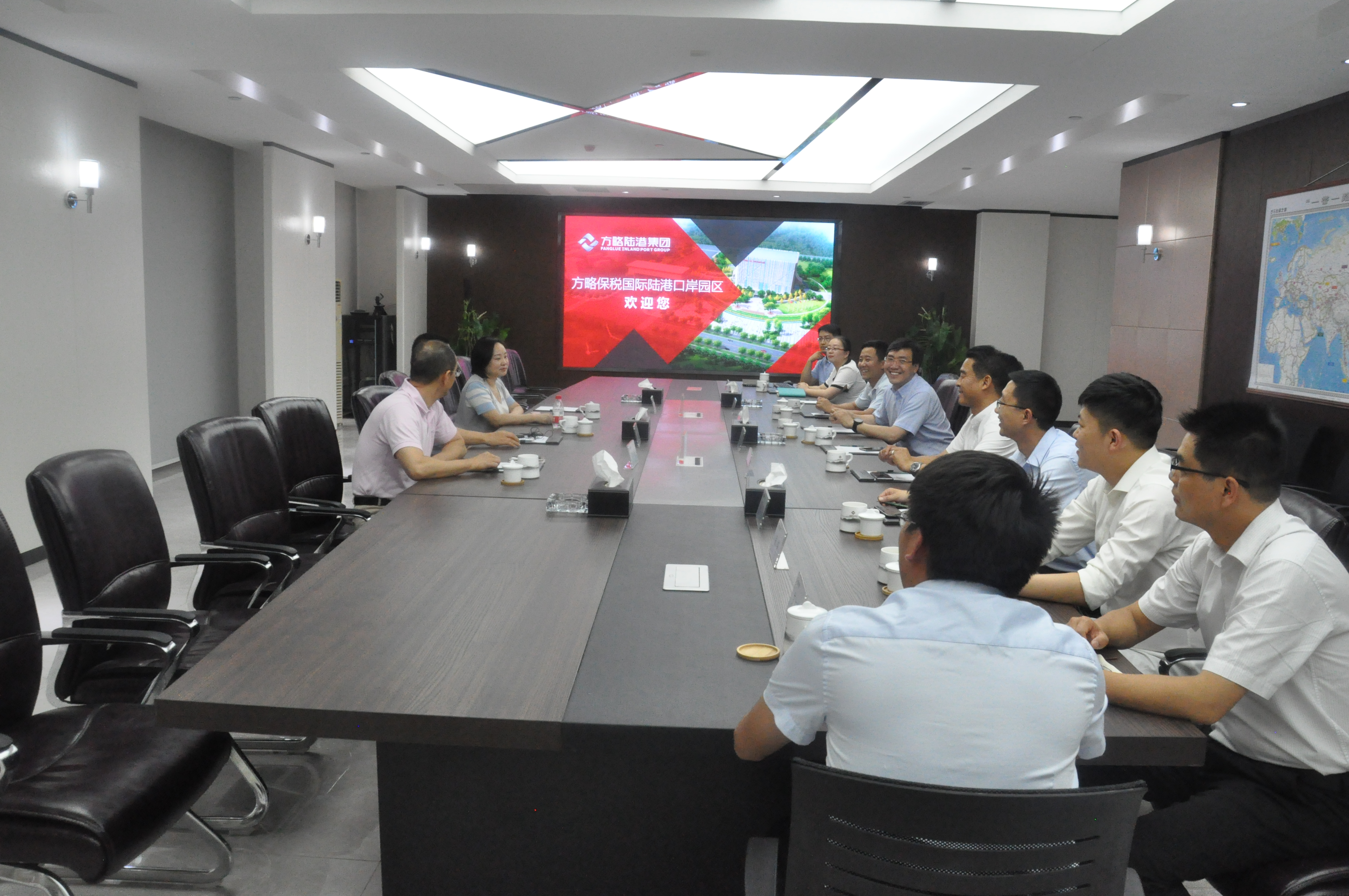 王雅旭一行首先來到方略保稅國際陸港口岸園區(qū)口岸聯(lián)檢辦公大樓大廳聽取了工作人員關(guān)于集團(tuán)概況、發(fā)展歷程、經(jīng)營優(yōu)勢及業(yè)務(wù)模式等多方面的介紹。隨后深入園區(qū)參觀了口岸作業(yè)區(qū)、海關(guān)特殊監(jiān)管區(qū)、洋貨碼頭暨醫(yī)療設(shè)備保稅展示區(qū)等功能區(qū)。最后雙方在口岸聯(lián)檢辦公大樓大會議室進(jìn)行了座談。