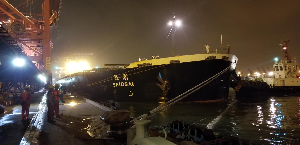 圖1:滿載集團從西澳進口裝船的PB粉(塊)搭乘濤聲(SHIOSAI)輪平穩靠泊日照港港口