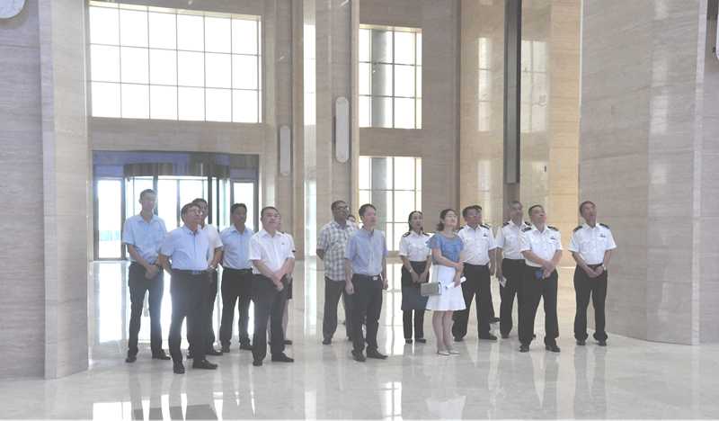 圖1:太原海關(guān)副關(guān)長(zhǎng)林躍飛一行在口岸聯(lián)檢辦公大樓大廳聽取工作人員關(guān)于方略保稅物流中心(B型)發(fā)展情況的介紹