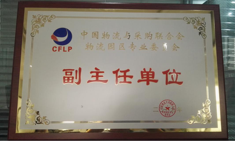 圖1:中物聯物流園區專委會為園區頒發的副主任單位證書
