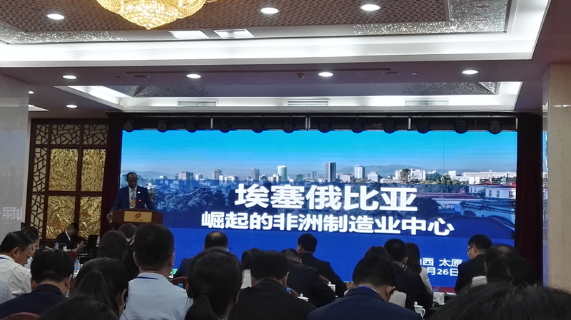 為推動山西省企業深入了解埃塞俄比亞和孟加拉等國投資環境,推動優勢產能有序轉移,深化國際產能合作,實現產業轉型升級,2019年9月26日上午,由省商務廳主辦、中交產業投資控股有限公司協辦的“國際產能合作重點國家和境外經貿合作區投資推介會”在太原召開。參加此次活動的人員有埃塞俄比亞駐華公使Ephrem Bouzayhue Hidug和使館工作人員,孟加拉駐華使館商務參贊Monsour Uddin,以及省商務廳、發改委、工信廳、國資委、能源局和各市商務局相關部門負責人,我省能源電力、裝備制造、化工、制藥、紡織、鋼鐵冶金、裝配式建筑、金融等相關領域80余家企業負責人,共170余人。董事長助理衛跟上代表集團出席了會議。