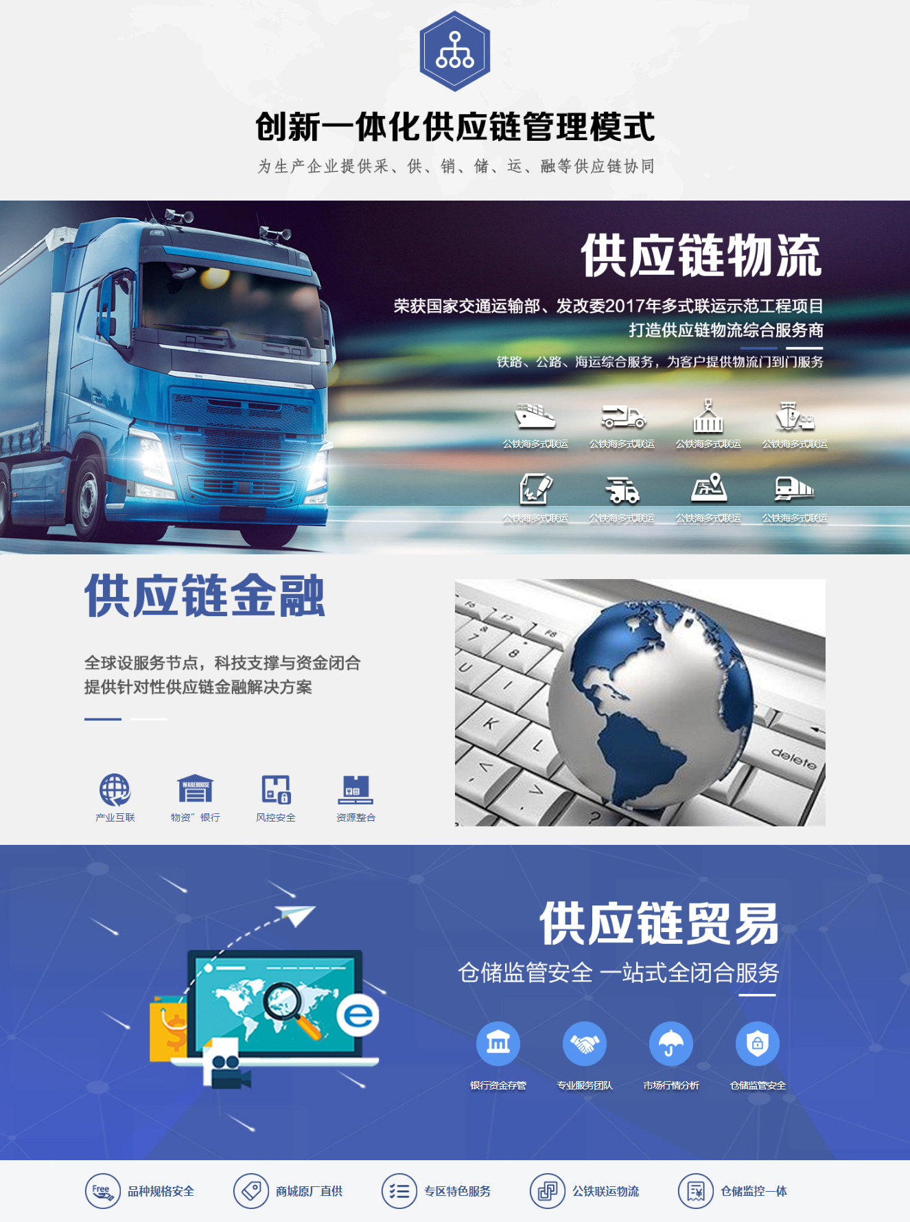 圖3:集團PC端首頁第二屏進行了全新大幅度調整,整合了三大業務模塊,更直觀展示一體化供應鏈管理模塊業務