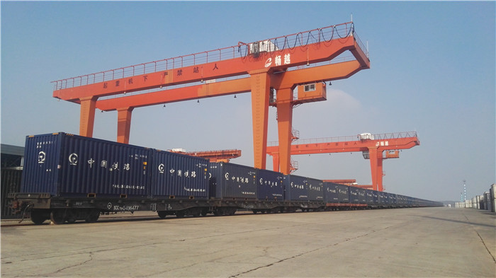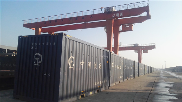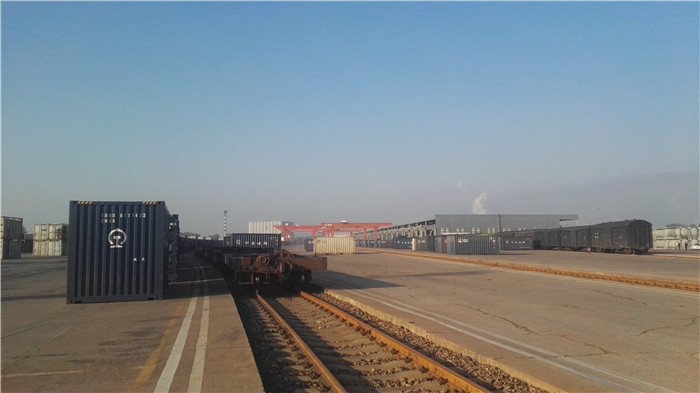 圖2:圖為內陸港往返二連浩特口岸的進口鐵礦粉35噸敞頂箱固定車底鐵路循環運輸作業現場