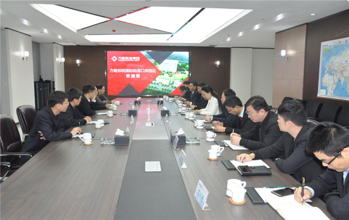 趙哲軍執行董事一行首先對方略保稅國際陸港口岸園區進行了參觀,特別是對“門到站”化肥的堆存及裝車作業現場進了查看。通過參觀,他對方略保稅國際陸港口岸園區的設施設備條件以及從提貨到卸車、堆存、保管、裝車、發運等作業環節的服務質量高度肯定。