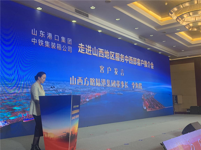 會(huì)上,李海瑕董事長作為重要客戶代表應(yīng)邀進(jìn)行了發(fā)言。發(fā)言中,她首先概要介紹了集團(tuán)的總體情況、突出優(yōu)勢(shì)和未來規(guī)劃,而后重點(diǎn)介紹了長期以來和日照港港口、中鐵集裝箱公司在大宗商品的供應(yīng)鏈貿(mào)易、供應(yīng)鏈物流、供應(yīng)鏈金融等業(yè)務(wù)領(lǐng)域的緊密合作所取得的優(yōu)異成績和結(jié)成的深厚友誼。最后她鄭重承諾:今后,山西方略陸港集團(tuán)將會(huì)進(jìn)一步加強(qiáng)發(fā)揮山東港口方略內(nèi)陸港的物流樞紐功能作用,與山東港口集團(tuán)、中鐵集裝箱公司展開更廣泛的物流供應(yīng)鏈服務(wù)領(lǐng)域的交流與合作,以實(shí)際行動(dòng)做好山東港口集團(tuán)以及中鐵集裝箱公司的最忠誠的合作伙伴,同時(shí)表示將會(huì)利用彼此間存在的國家陸海物流大通道,利用“公轉(zhuǎn)鐵”的歷史機(jī)遇,港港聯(lián)動(dòng),互聯(lián)互通,大力發(fā)展基于集裝箱為運(yùn)輸單元的雙向循環(huán)運(yùn)輸班列,并與貿(mào)易、金融相融合,與大宗產(chǎn)業(yè)的市場(chǎng)需求相融合,攜手并肩,榮辱與共,共贏未來。