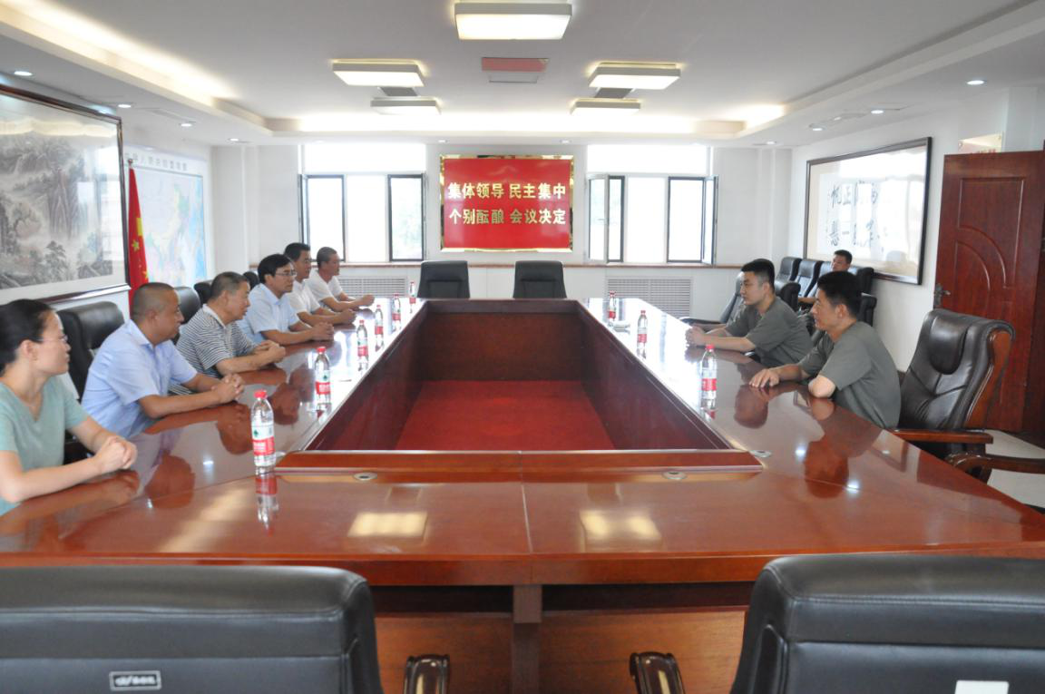 圖1:“八一”前夕,集團領導班子集體奔赴駐地某部隊組織開展“八一”建軍節慰問活動。圖為雙方領導在部隊會議室共敘魚水情,暢享鄰里歡