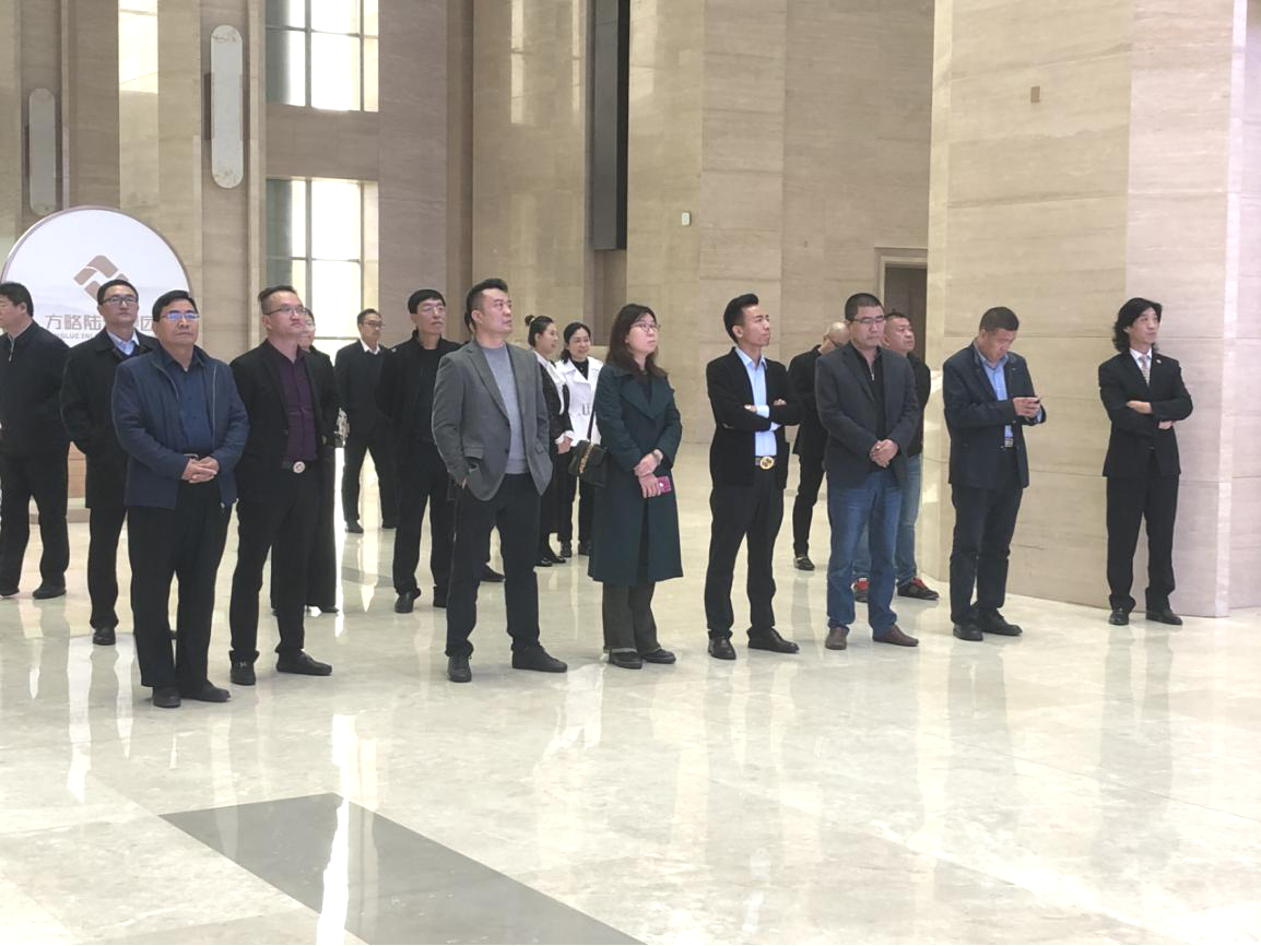 圖1 深圳市臨汾商會考察團一行在,侯馬經濟開發區黨工委副書記、管委會副主任崔玲玲,管委會主任助理、投資合作促進部部長王金虎的陪同下蒞臨集團考察調研,圖為在口岸聯檢辦公大樓一樓大廳聽取工作人員介紹企業整體發展情況,集團副總裁衛跟上進行了熱情接待