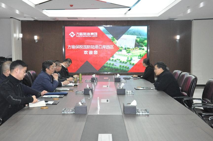 范藝臨一行首先來(lái)到方略保稅國(guó)際陸港口岸聯(lián)檢辦公大樓聽(tīng)取了工作人員對(duì)集團(tuán)整體發(fā)展情況的介紹,隨后深入口岸實(shí)地考察參觀(guān)了口岸作業(yè)區(qū)、海關(guān)監(jiān)管區(qū)等各功能區(qū)。最后在聯(lián)檢辦公大樓二樓會(huì)議室進(jìn)行了座談。