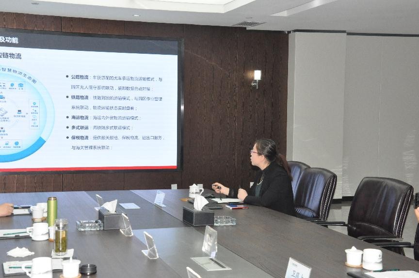 圖4 集團(tuán)工業(yè)品交易中心主管賀亞燕在向客人介紹工業(yè)品交易中心的整體情況