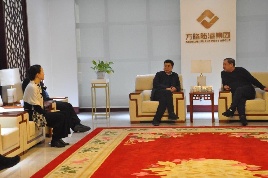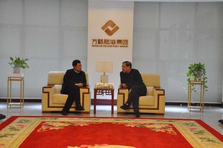 曹劍鋒總經理一行首先來到方略保稅國際陸港口岸聯檢辦公大樓聽取了工作人員關于集團整體情況的介紹,隨后深入口岸實地考察參觀了口岸作業區、海關監管區、“一帶一路”洋貨碼頭區等各功能區。最后在聯檢辦公大樓二樓會議室進行了座談。