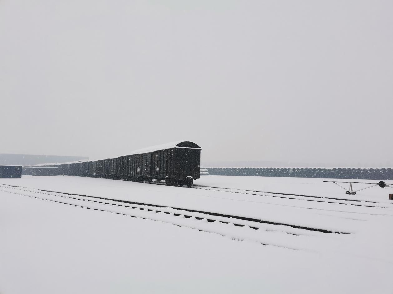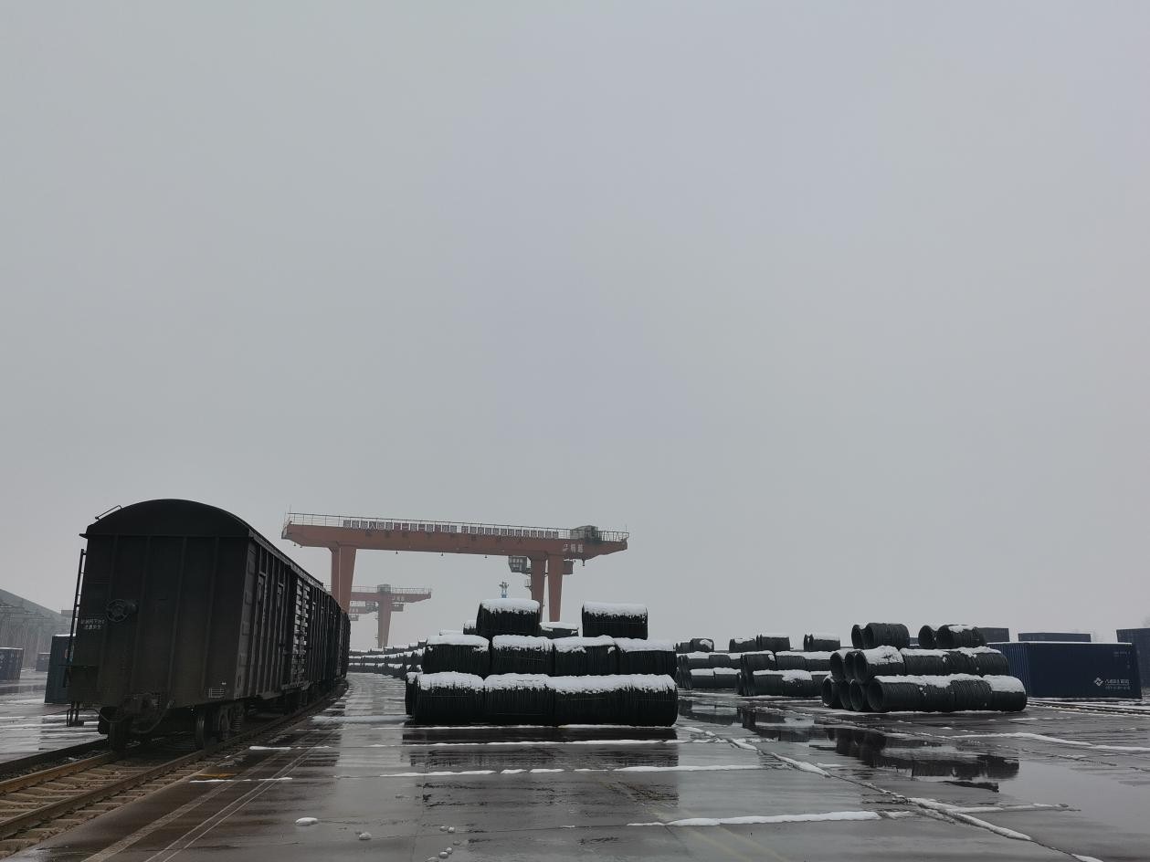 圖6 鐵路站臺上堆存的交易鋼材也披上了銀裝
