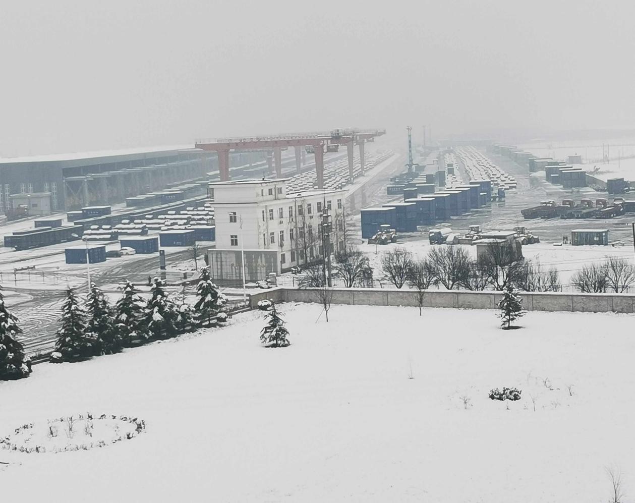 白雪卻嫌春色晚,故穿庭樹作飛花。2021年2月24日,農歷正月十三,濃濃的年味尚未走遠,一場突如其來的大雪裝扮了整個城市的每個角落,當然也包括方略內陸港。大雪的到來,不僅凈化了空氣,也為節日的方略內陸港增添了別樣的色彩,只見大片大片的雪花從天上飛落下來,園區卡口、大樓、場站......等立刻變得銀裝素裹,分外妖嬈,令人陶醉。