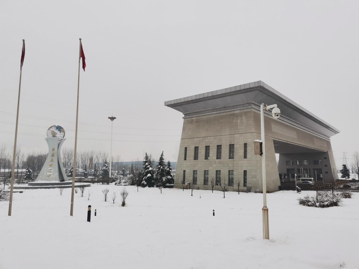 圖1 正月十三,一場大雪不期而至,瞬時間方略內陸港一片銀裝素裹,圖為雪后更加壯觀挺拔的口岸聯檢辦公大樓