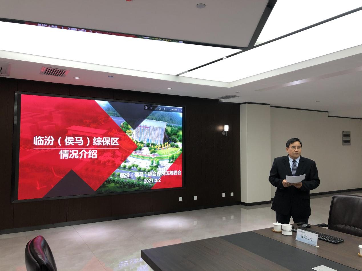 圖3 座談會上,集團副總裁衛跟上就臨汾市政府依托山西方略保稅物流中心(B型)資質牌照及已建成山西方略保稅國際陸港口岸園區升級獲批臨汾(侯馬)綜合保稅區的有關情況進行了專題匯報