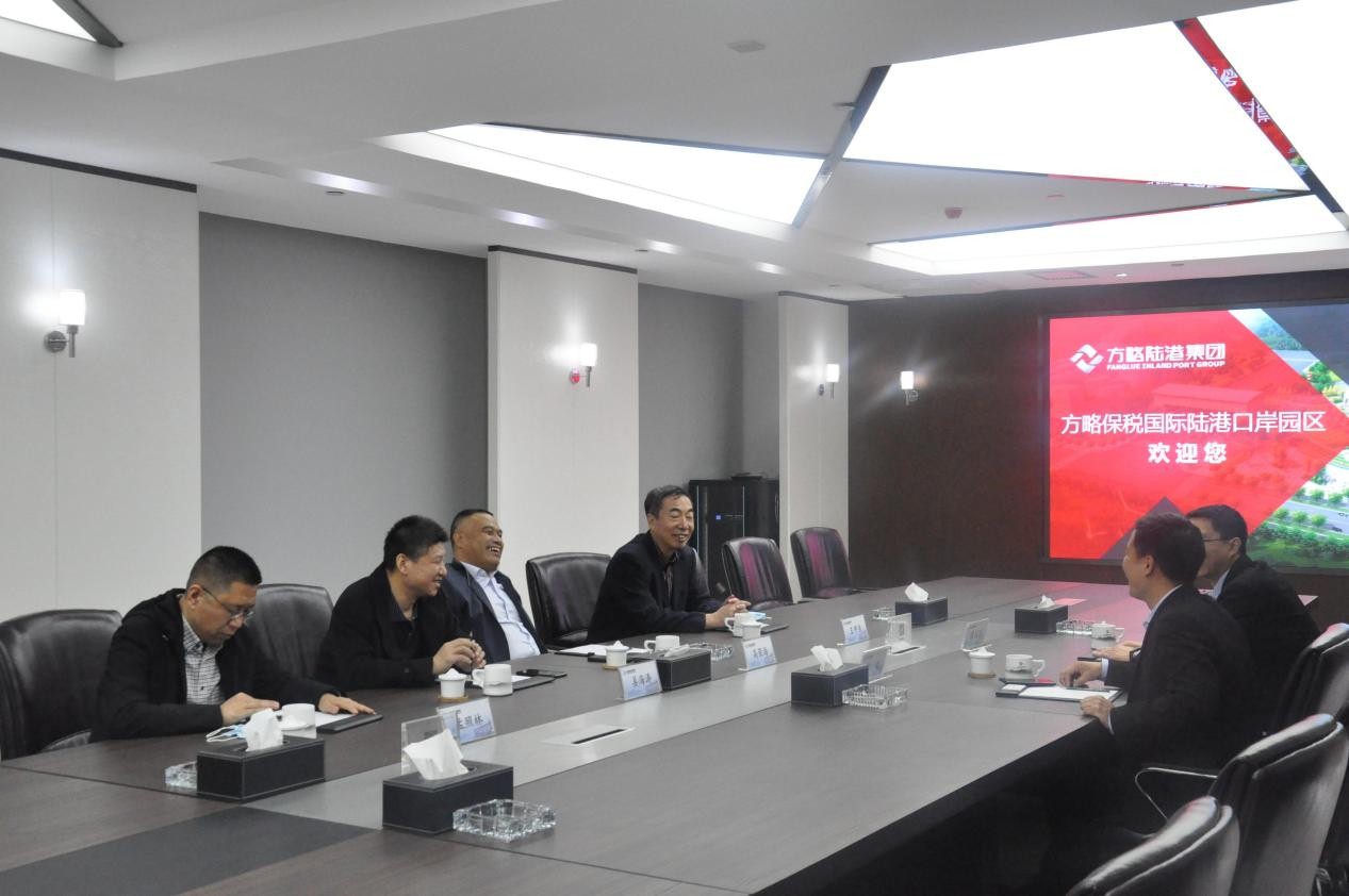 高榮海董事長一行首先來到口岸聯檢辦公大樓服務大廳聽取了工作人員關于方略內陸港有關情況的介紹,隨后參觀了現場,最后在會議室進行了座談。