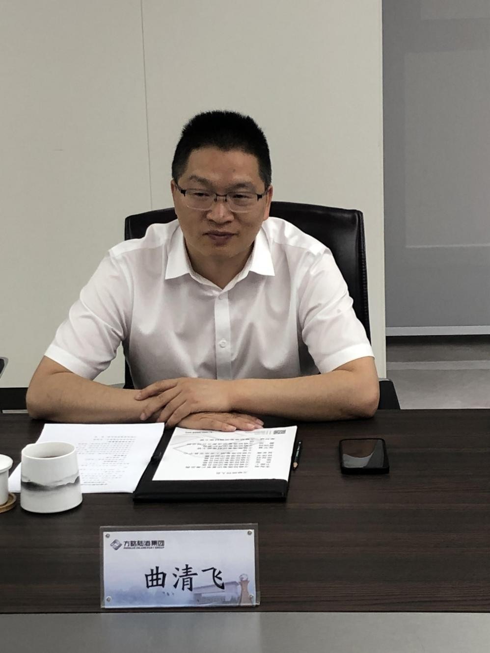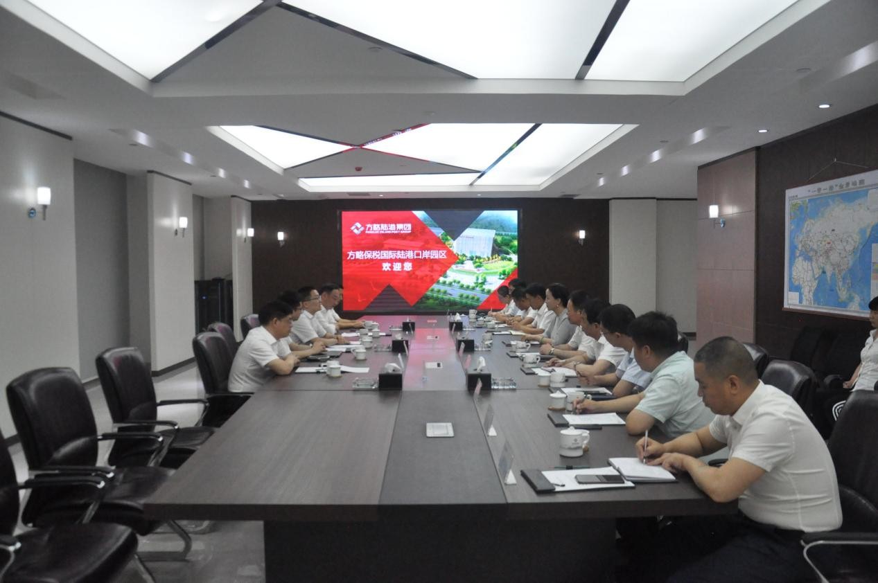 曲清飛董事長一行首先來到口岸聯檢辦公樓一層大廳聽取了工作人員關于園區建設與運營情況的介紹,隨后深入園區進行了實地參觀。最后來到會議室進行了座談。