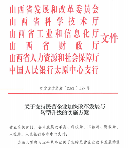 加快民營企業改革發展與轉型升級 山西省六廳局聯合下文支持