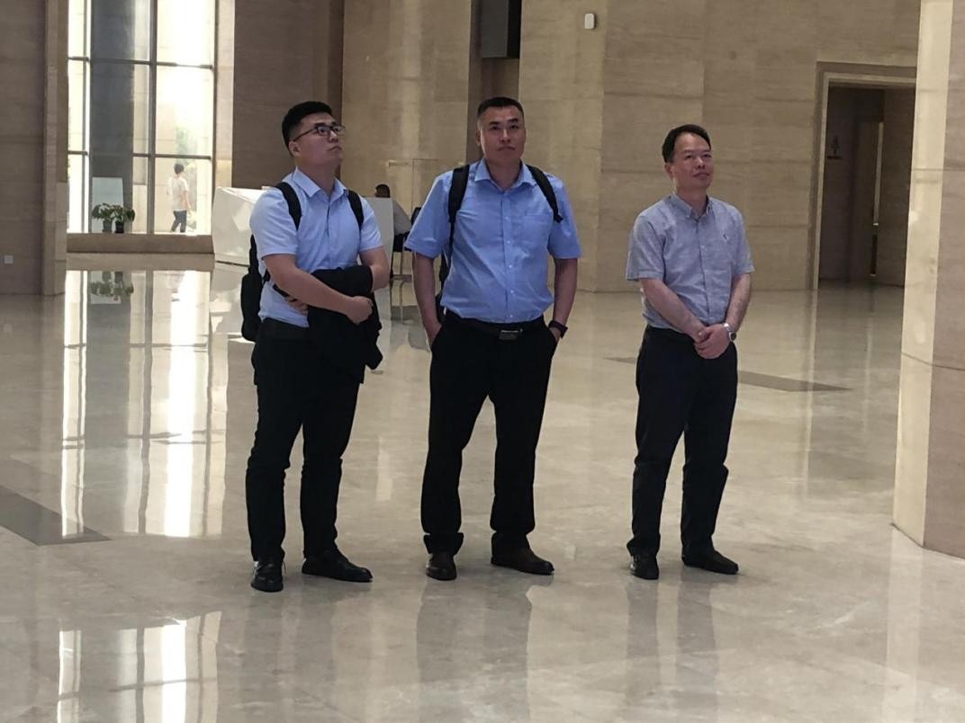 圖1歐冶工業品股份有限公司祁峰(中)經理一行在山西方略保稅國際陸港口岸園區口岸聯檢辦公大樓一層大廳聽取工作人員介紹園區整體情況,集團副總裁孫俊(右)進行了熱情接待